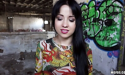 Young dark haired slut let her camera man wreck her kitten with big fake cock