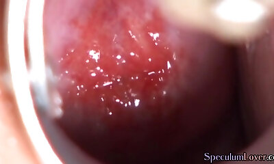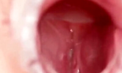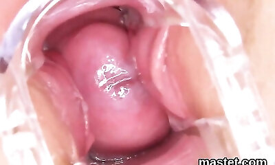 Erotic nympho is widely opened narrowed slit in close up and having ejaculation