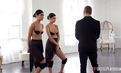 Nimble dancers Gianna Dior and Emily Willis fucked by one dude