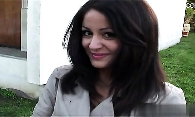Slim brunette chick Marta gets double smashed in the forest