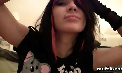 Watch hairy goth damsel masturbate