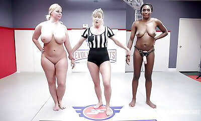तीन गर्म लड़कियों में एक थकाऊ नंगे कुश्ती लड़ाई भाग 1