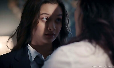 Red-hot like fire handsome office lesbian Alex De La Flor lures charming babe for sex