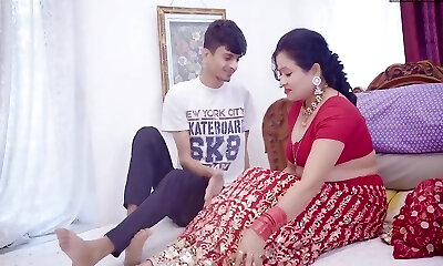 Stepson in bed with buxomy step-mother. She thinks it's her husband at first. He fondled and fucked her