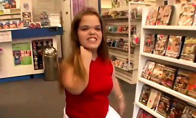 Young midget with raven hair Bridget Powers takes yam-sized lollipop in her raw pussy till he cums on her