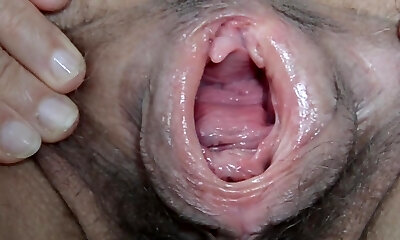 Sex-positive girl pumps her pussy, then starts riding huge dildo. Her wet creamy pussy gets an orgasm.