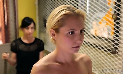 Busty dark skin vixen watches how a bony milky girl is dominated