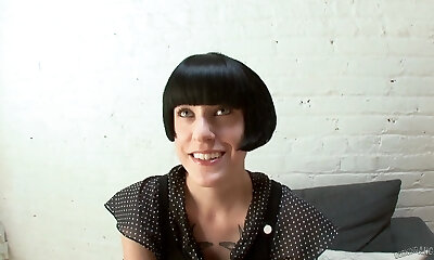 Full of emotions short haired dark haired emo chick gets bald twat pummeled
