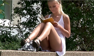 Heather Silk - Exhibitionist Wifey #62 Upskirt Flashing Her Shaved Milf Cunny At Beach Worker And Topless Public Shower! 12 Min