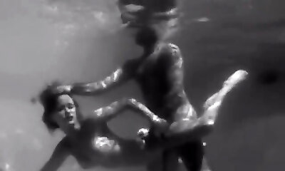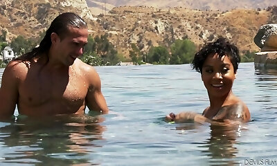Bare ebony babe Lala Ivey is swimming in the pool before a super-naughty romp with her white neighbor