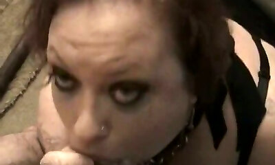 Chubby and pale blond haired biotch sucks long cock of ugly dude