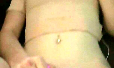 Lengthy haired ebony head with ugly saggy pale tits was masturbating on webcam